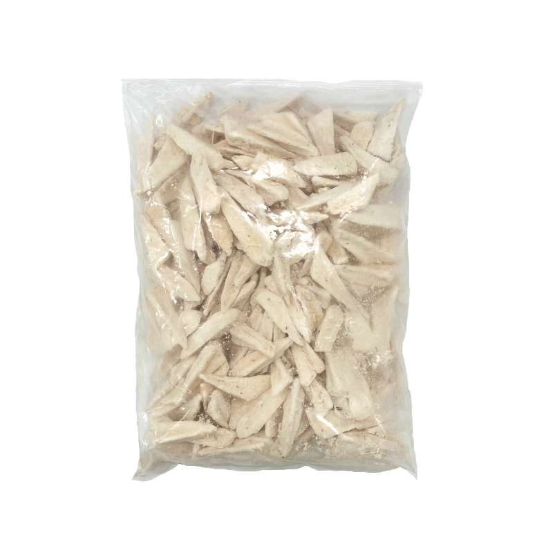 鶏のむね肉と皮をミンチにし、リング状の型に流し成型した商品です。衣のサクッと感とミンチの旨味が感じられます。型に流しているため型崩れしにくい逸品です。